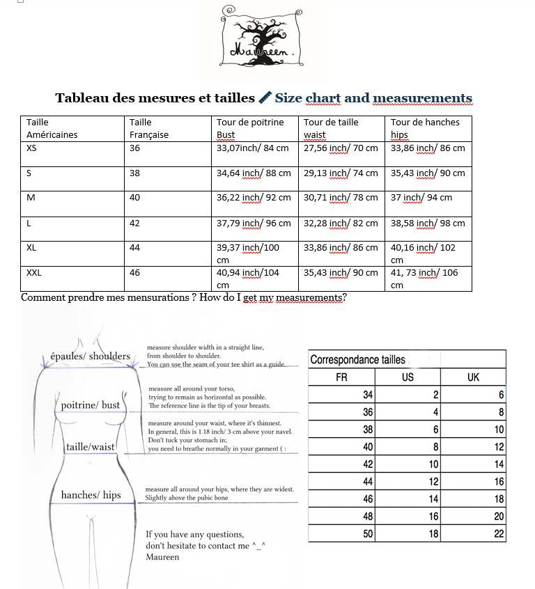 Merci de vous référer au tableau des mensurations en image afin de mieux choisir votre taille.