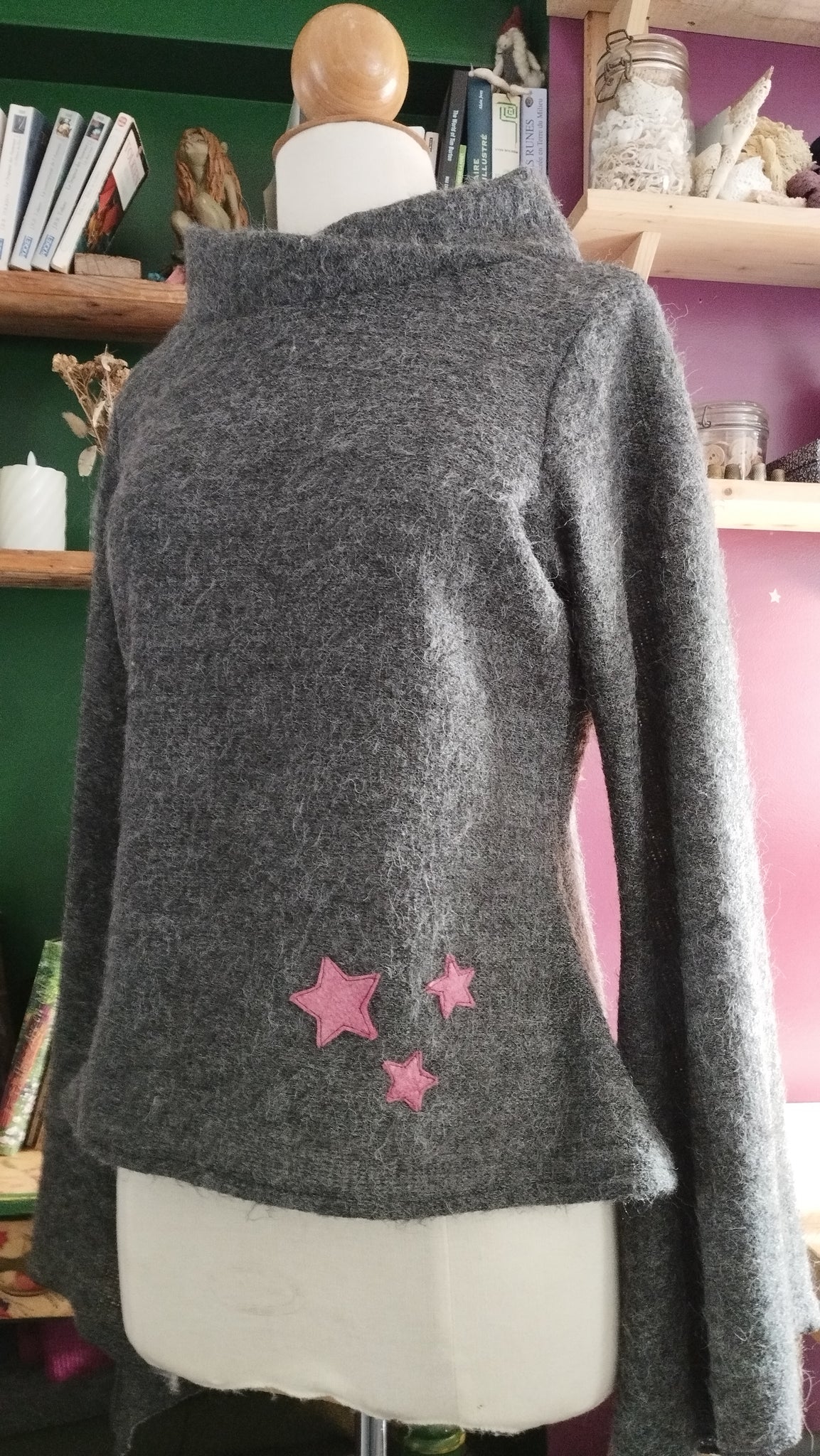 (Les étoiles sont cousues en bas à gauche sur le devant du pull, je n'ai pas encore fait de photo de cette version )